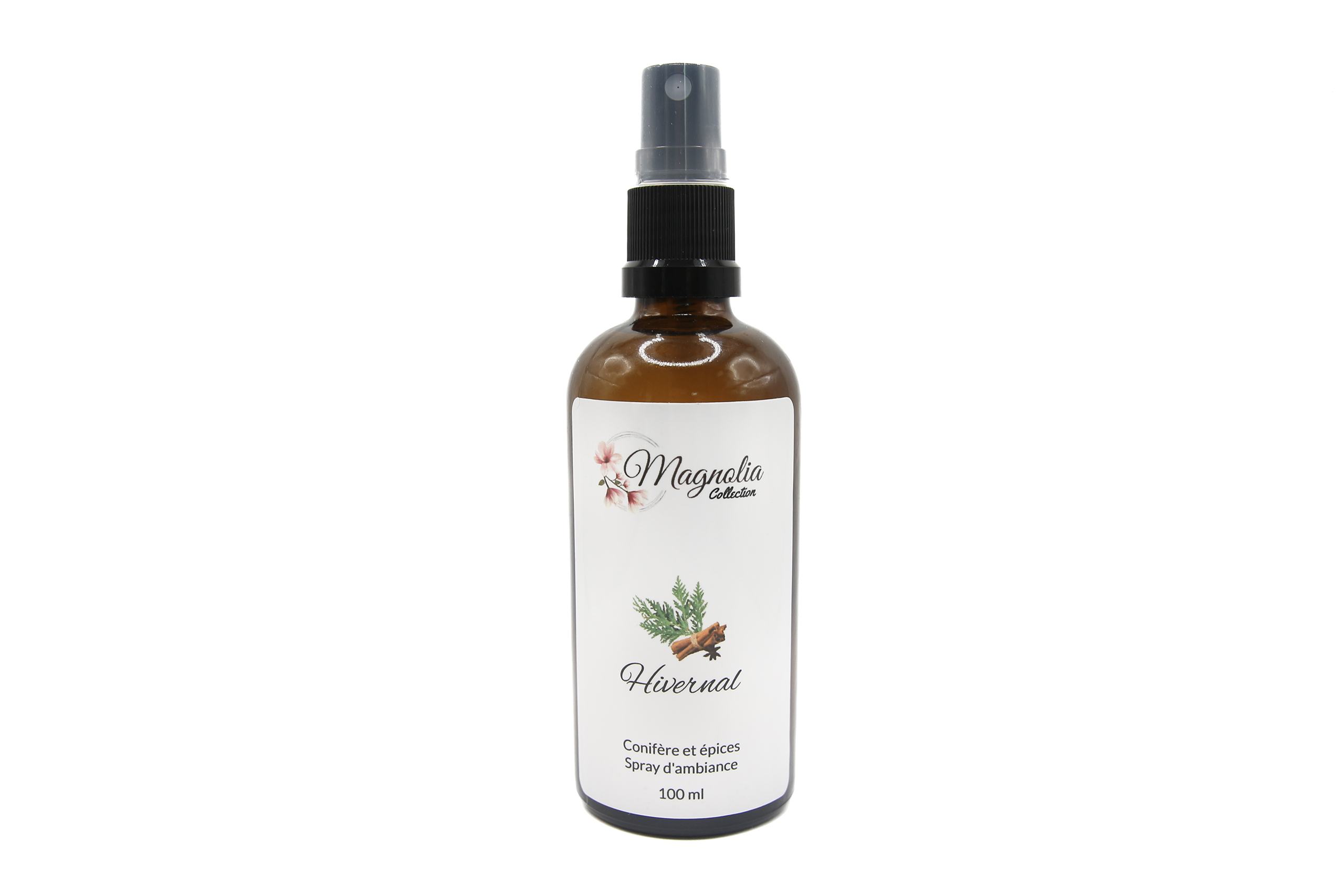 Alcool 70%, eau distillé, huile essentiel conifère et épices.